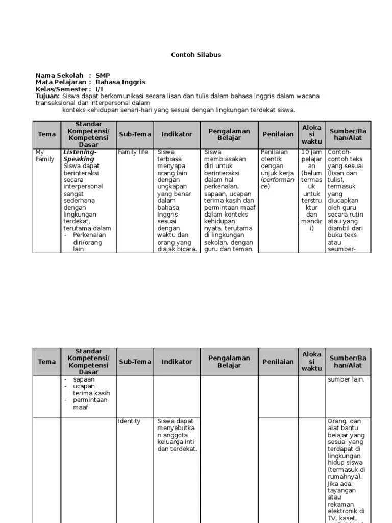 silabus bahasa inggris smp kurikulum 2013 ini dapat dijadikan sebagai pedoman guru dalam penyusunan rpp dan melaksanakan pembelajaran. silabus bahasa inggris smp kelas 8 kurikulum 2013 doc terbaru cukup sampai disini dulu artikel yang bloggersiana tulis dan sajikan pada bapak/ibu pada kesempatan kali ini, semoga apa yang tersaji melalui artikel ini terkait silabus bahasa inggris untuk jenjang sd kurikulum 2013 dengan format doc ini, bisa meringankan sedikit beban kerja bapak. silabus smp/mts bahasa inggris kelas 1/vii kurikulum 2013 di bawah ini telah kami sediakan silabus bahasa inggris untuk tingkatan smp atau mts kelas 1 (vii) sesuai dengan kurikulum terbaru, kurikulum 2013. silabus kurikulum 2013 revisi 2017 smk tkj kelas x xi xii mas wedan 9 december 2018 0 apakabar sahabat silabus.org pada kesempatan ini kami memposting silabus kurikulum 2013 revisi 2017 smk tkj kelas x. Download rpp dan silabus smp kurikulum 2013 lengkap. Download silabus bahasa inggris kelas 7 kurikulum 2013 revisi 2019 dan 2018. Download perangkat pembelajaran smp kelas 7, 8, dan 9. Dokumen penting salah satunya adalah silabus bahasa inggris kelas 11 sma kurikulum 2013 revisi tahun 2021/2022. Berikut ini adalah silabus bahasa inggris kelas sma/ma/smk/mak kurikulum 2013 revisi 2016. Rpp bahasa inggris kelas 7 kurikulum 2013. silabus smp bahasa inggris kurikulum 2013 revisi 2016. Download silabus revisi 2020 jenjang smp/mts kelas vii,viii & Meskipun demikian, bapak/ibu guru tetap dapat mengembangkan dan.