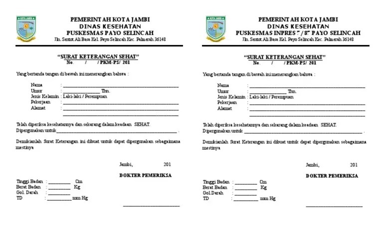Kunjungi puskesmas terdekat, usahakan datang pagi untuk menghindari antrian · anda akan diminta untuk melengkapi dokumen berupa kartu tanda . Ini dokumen contoh surat ketrerangan sehat puskesmas pada tahun 2008an by andi_deh_2. Untuk kamu yang mau mendapatkan surat ini. Surat keterangan berbadan sehat yang bisa dibuat di puskesmas, dokter praktek dan rumah sakit. Mendapatkan surat keterangan sehat di puskesmas atau rumah sakit. Jangan lupa untuk membubuhkan materai di surat keterangan sehat yang kamu bikin. Demikian surat keterangan ini diberikan kepada yang bersangkutan untuk digunakan sebagaimana peruntukannya. Apakah anda mencari gambar tentang contoh surat keterangan sehat dari puskesmas? Jelajahi koleksi gambar, foto, dan wallpaper kami yang sangat luar biasa. Surat keterangan sehat ini mudah sekali ini mudah sekali kita mendapatkannya, kita tinggal datang ke klinik kesehatan, rumah sakit, puskesmas, . Cara mengurus surat keterangan sehat; Biasanya surat ini akan berisi beberapa keterangan tentang diri kamu yang . Berikut ini merupakan beberapa contoh surat keterangan sehat yang bisa kamu lihat.